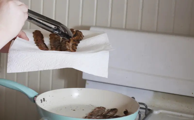 What if you only cooked a few strips of bacon? Using a whole container seems like overkill for a tablespoon of grease. That’s where paper towels come in handy. This absorption method works great for small amounts of leftover fat. You can also use clean kitty litter, sand, or even sawdust if you happen to have some around. The idea is to soak up the grease so it doesn’t make a liquid mess in your trash can.