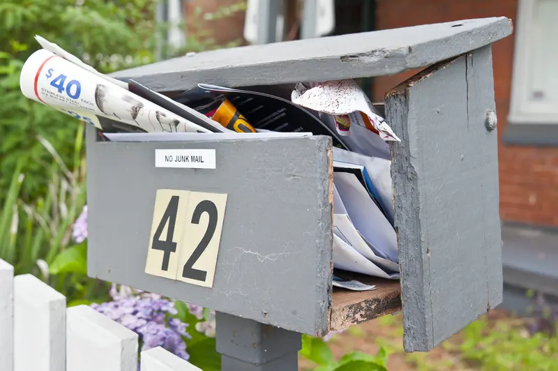 An overflowing mailbox screams that nobody is home, making your property a target for thieves and burglars. The postal service offers free mail hold services for periods ranging from three to 30 days. You can request this service online, by phone, or at your local post office. Simply specify your hold dates, and carriers will keep all your mail at the post office until you return. When you pick up your held mail, everything arrives in a bundle, organized and secure.