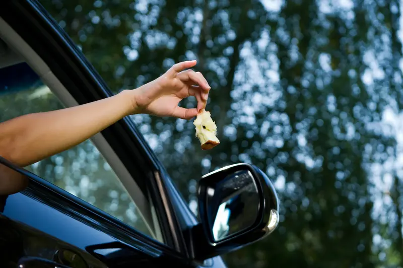 So what’s the alternative? The simplest solution is to keep a small bag in your car or backpack for food scraps. Many convenience stores sell small trash bags that fit perfectly in a door pocket or glove compartment. When you finish eating, the core goes in the bag and comes home with you. From there, you can dispose of it properly in your household trash or, better yet, add it to a backyard compost bin where it will actually break down correctly.