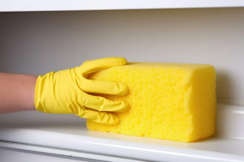 A dry sponge naturally absorbs moisture from its surroundings, which helps reduce the humidity inside your fridge. When there’s less dampness, odor molecules can’t spread as freely, and the smells don’t become as overwhelming or persistent. This won’t stop your food from spoiling if the power is out long enough, but it can make the aftermath much less miserable to deal with. Cleaning experts recommend using a completely clean, dry sponge for this purpose, since a dirty or damp sponge could introduce additional bacteria or smells into your fridge.