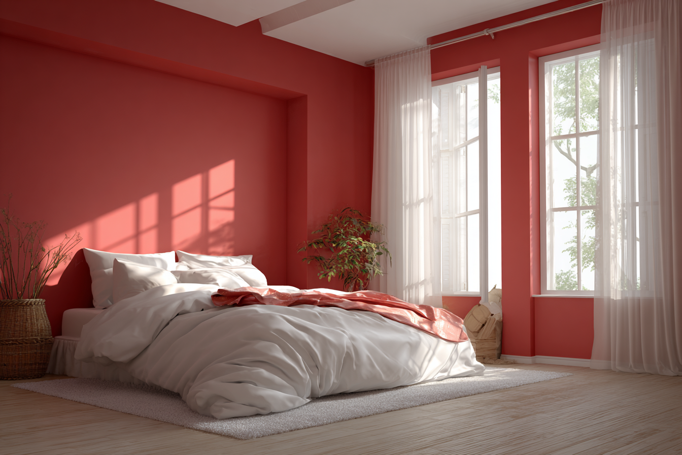 The problems with red extend beyond just the psychological effects. Red pigments tend to fade unevenly over time, meaning your walls will start looking patchy and worn much faster than other colors would. The color also absorbs light rather than reflecting it, which makes your bedroom feel smaller and more cramped than it actually is. When morning sunlight streams through your windows and hits those red walls, the room fills with an intense, almost neon glow that nobody wants to wake up to. If you absolutely love red, designers suggest opting for a muted burgundy or deep maroon instead, which provides richness without the overwhelming stimulation.